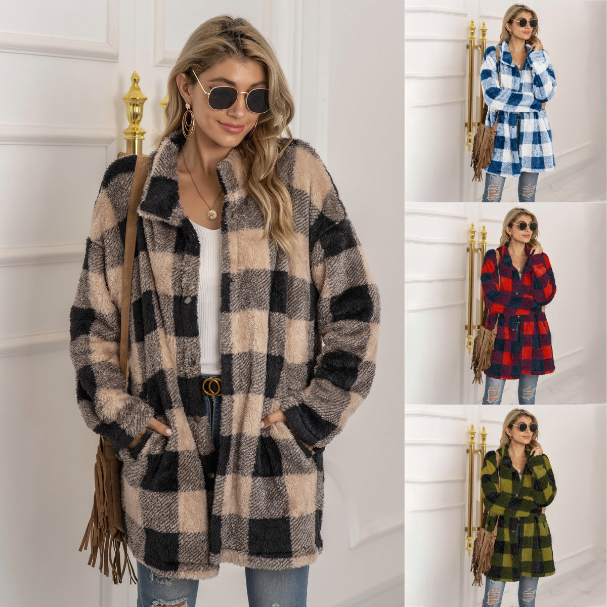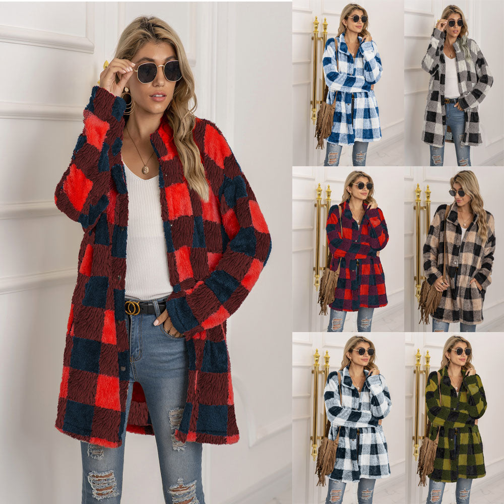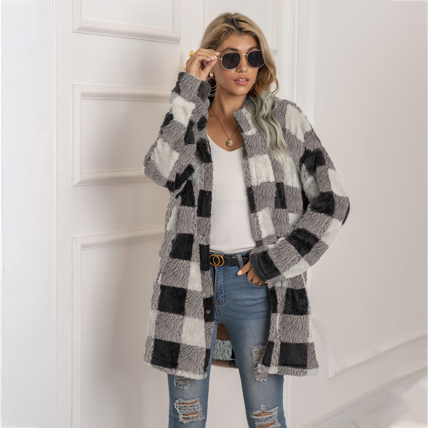 💖【Zimná zľava -46%🔥🔥】Dámsky dlhý kabát z plyšového materiálu s károvaným vzorom, ideálny na zimu