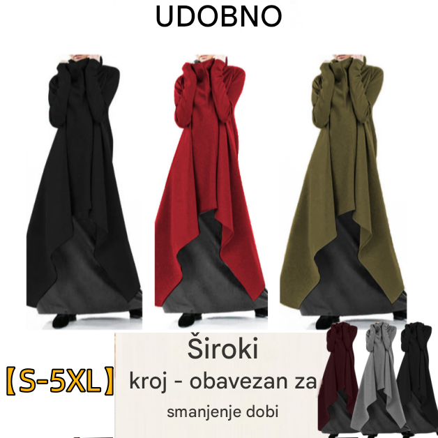 š Snižena cijena -48%š„ćS-5XLćÅ iroki, nepravilni dugi ogrtaÄ, pulover s dolÄevitom za žene