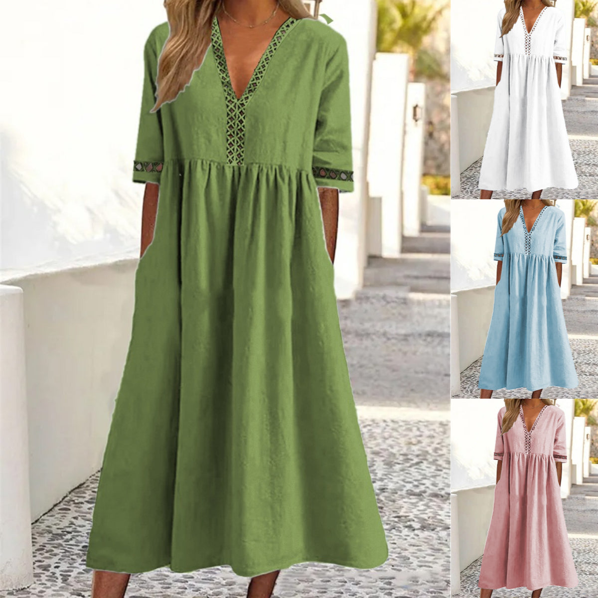 👗【–50% de descuento 🔥】😍 Vestido nuevo con encaje, cuello en V y mangas cortas