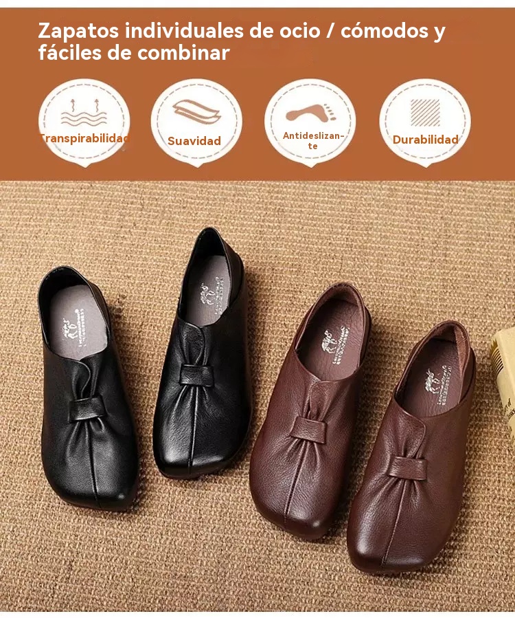 👡【35-42】2025 nuevos zapatos sin cordones de suela suave con lazo, piel de vaca de alta calidad, simples y exquisitos