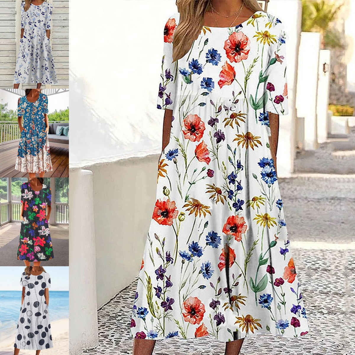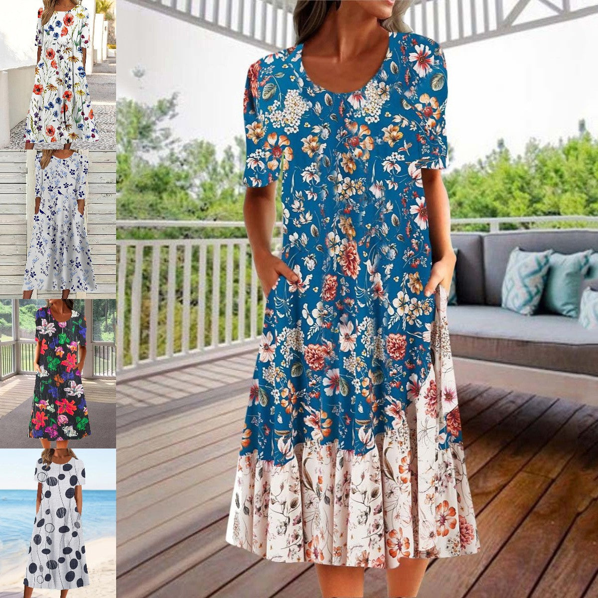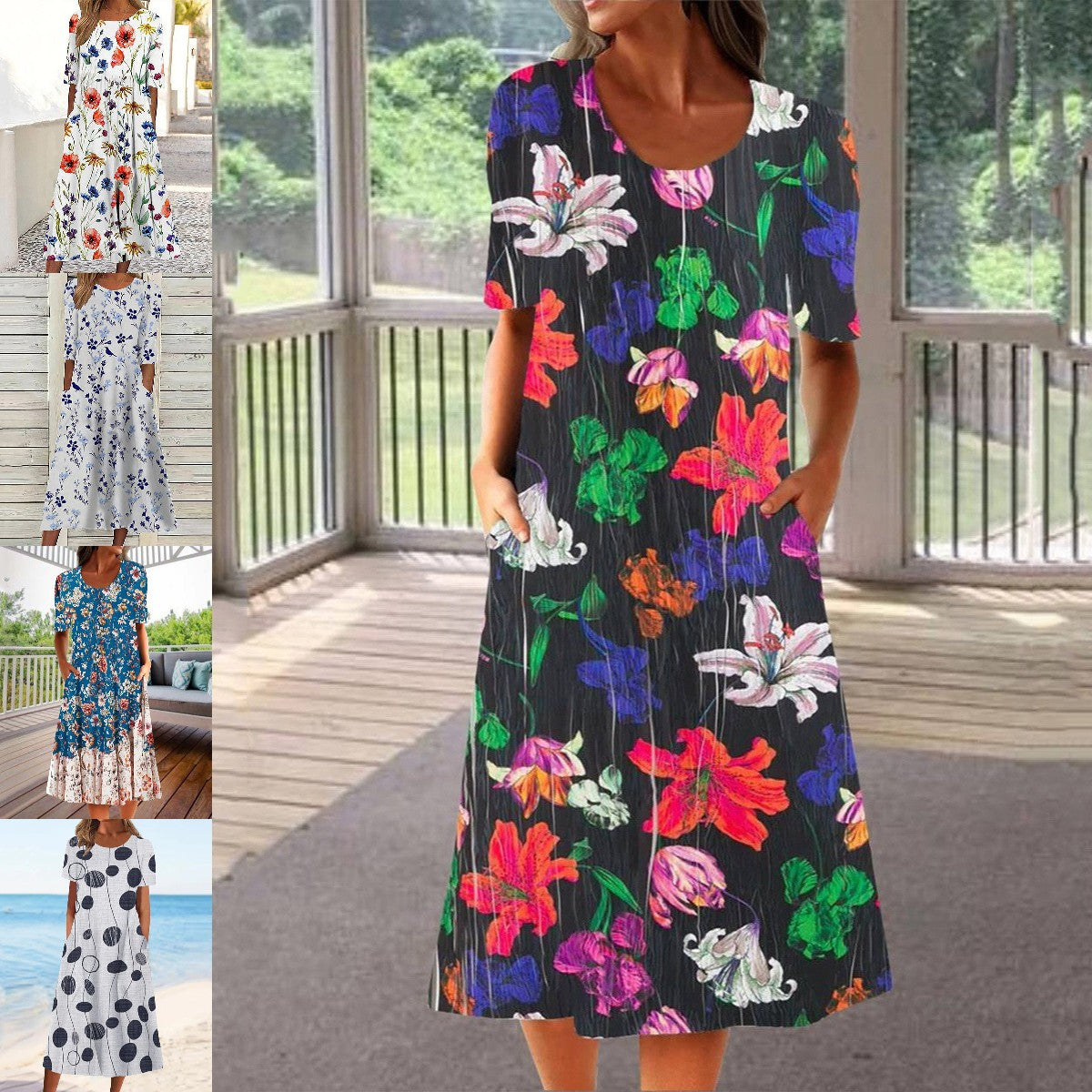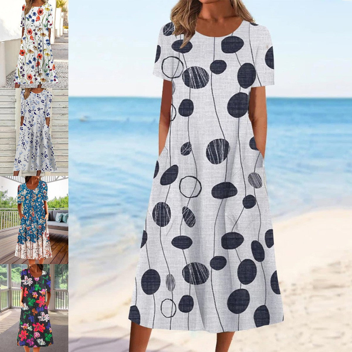 🌸👗【S-3XL】Rochie Casual de Vară 2025 cu Gât Rotund și Imprimeu Modern 🌞 Lejeră & Confortabilă pentru Zile Călduroase