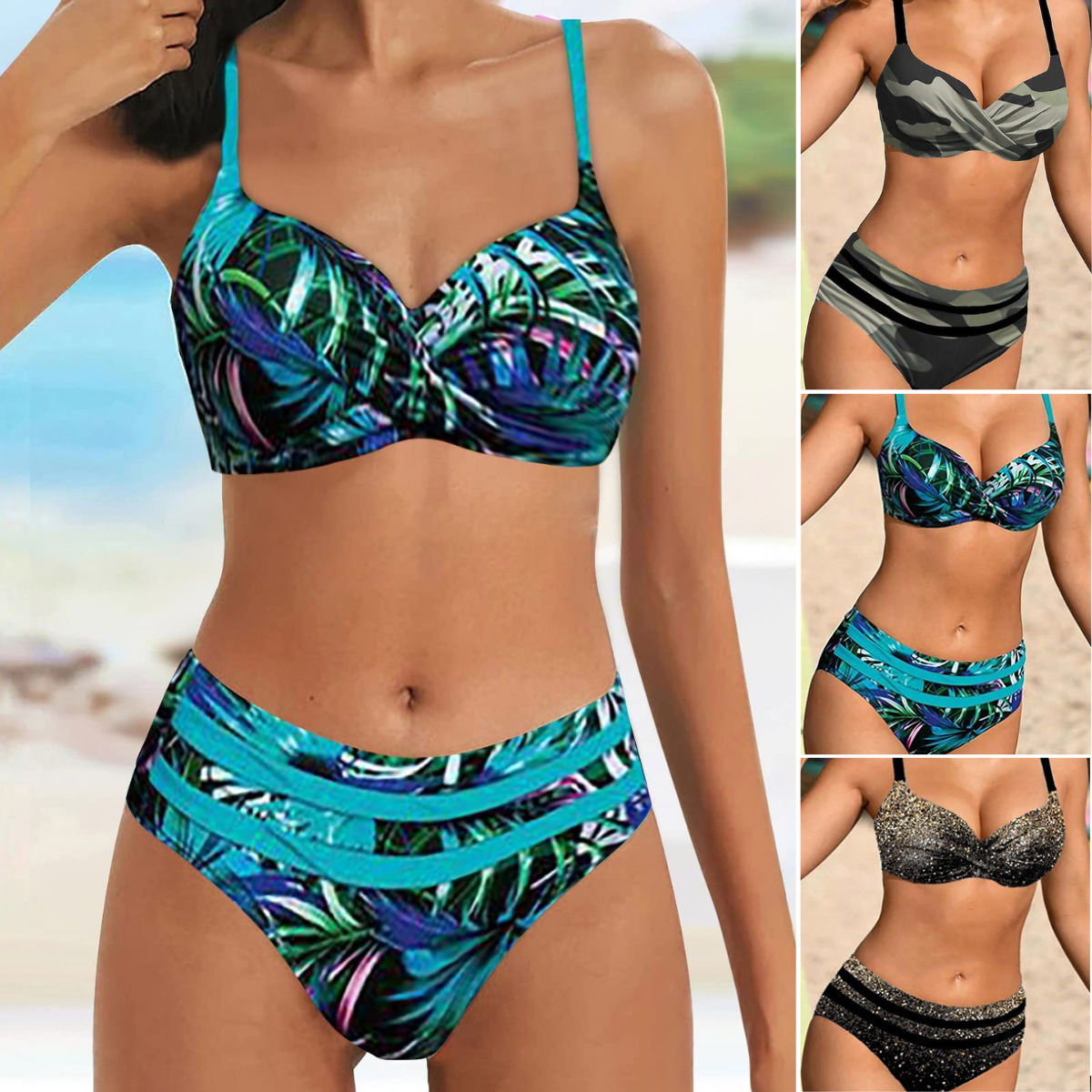 🌊👙【S~5XL】💋2025. Nouă bikini de baie mărimi mari cu imprimeu împărțit.